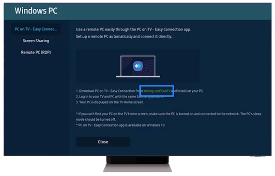 Приложение Easy Connection to Screen— это удобный инструмент, который использует Smart TVдля управления ПК. Удаленный рабочий стол с вкладками предлагает различные типы подключений к экрану, такие как Remote Desktop, PowerShell, SSH,Telnet, VNCи т. д. Для этого процесса требуется, чтобы оба устройства были подключены к одной и той же сети Wi-Fi.